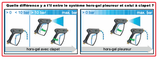Le pistolet hors gel pleureur laisse constamment couler un filet d'eau à la différence du pistolet à clapet